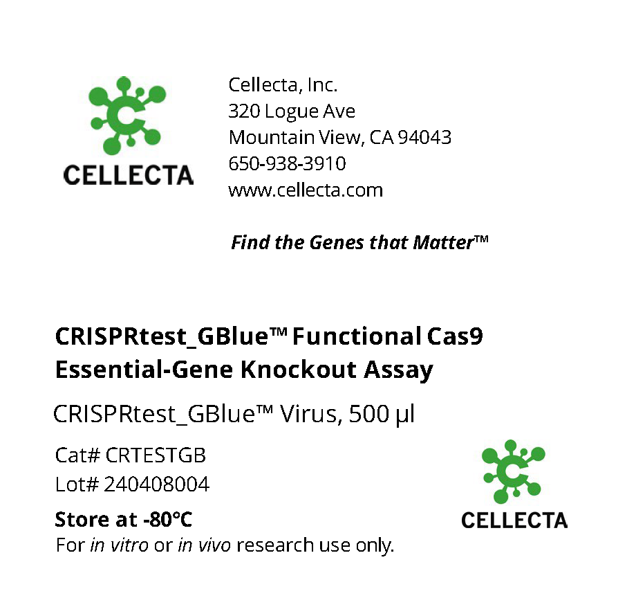 CRISPRtest_GBlue™Mouse Functional Cas9 Essential-Gene Knockout Assay for Murine Cells, GFP/BFP